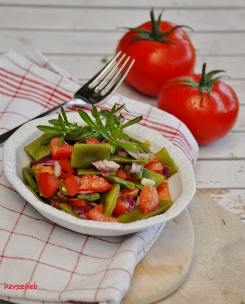 gestern war mir das Wetter zu heiß zum kochen und so habe ich mich für Deinen Bohnen-Tomaten-Salat entschieden.