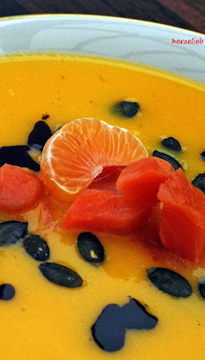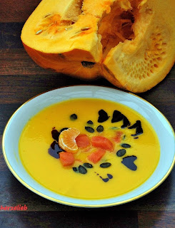 dieses Süppchen ist der Hammer, ich liebe Kürbis und habe im Herbst immer welche in der Küche, werde gleich Lachs und Mandarinen besorgen und los geht es.